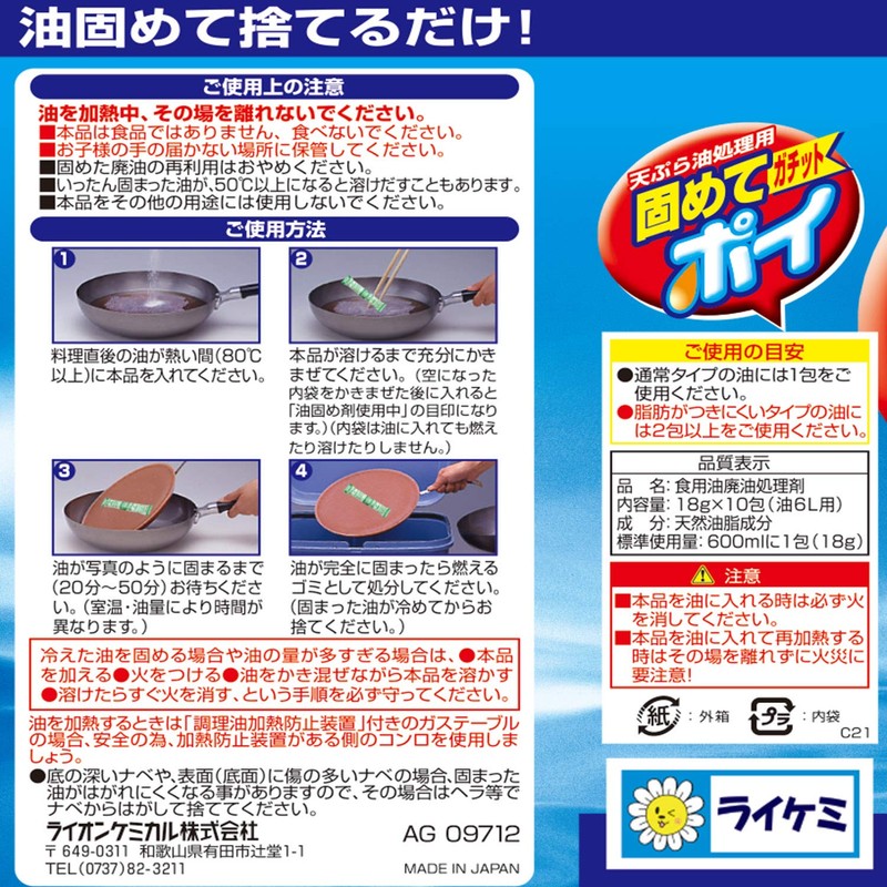 - Features: Waste oil treatment agent simply harden and dispose of oil. Easily dispose of food grease without mess in your hands or kitchen