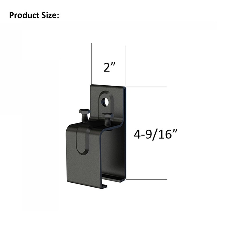• Perfect Fit for Standard Box Track Dimensions The box track bracket is designed to fit box tracks with a width of 1-7/8" and a height of 2-3/8". With dimensions of 2" in width and 4-9/16" in height, this connector ensures a precise and secure fit, making it an essential component for any outdoor sliding barn door hardware installation.
