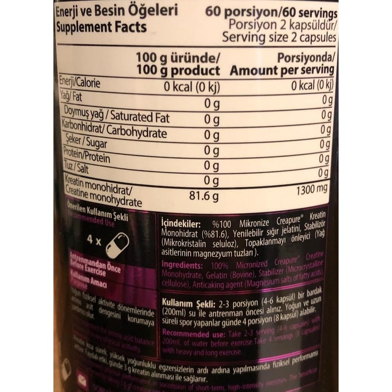 Hardline Creapure %100 saf mikronize kreatin monohidrattan olusan bir kreatin ürünüdür. Dünyanin tek Mikronize Kreatin Monohidrat üreticisi olan Alman firmasi ALZCHEM tarafindan üretilmistir.Mikronize formda olan Creapure daha hızlı bir emilime sahiptir.Hardline Creapure ATP’nin (enerji) kaslarda daha uzun süreli kalmasını yardımcı olabilir.