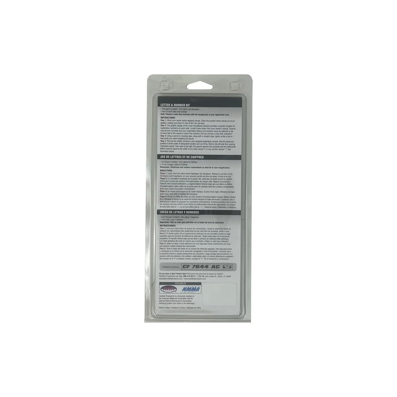 - Registration kit for boats and personal watercraft. Includes four (4) sets of A-Z and four (4) sets of 0-9.