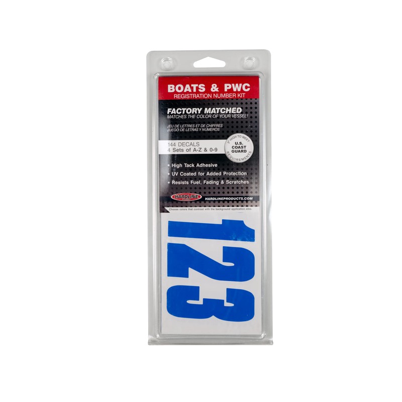Hardline Products Hardline Products Series 350 Factory Matched 3-Inch Boat & PWC Registration Number Kit, Solid Blue - BLU350EC