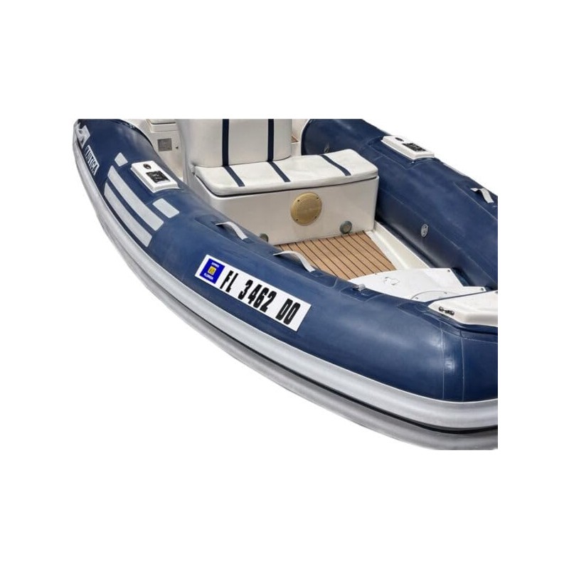 Registration Plate Kit Includes two (2) White Marine Grade ABS plastic registration number plates 4″ tall x 24″ wide x 1/16″ thick with 3M SCOTCH MOUNT EXTREME double sided mounting tape. Ready for display of registration letters & numbers on Dinghy’s, Inflatables and RIBs. Plates are blank and ready for decals. If your inflatable has no grab handles, oars or perimeter rope to secure your registration plates with, use this package. Each of your registration plates Port & Starboard include pre-applied double sided mounting tape for quick installation. Just peel and apply. Note: If you deflate your vessel annually, you will have to reapply plates with new tape. Our Registration plates have enough space for your registration number sequence and yearly state permit decal mounted in front or back.