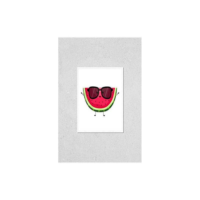 HardPress Wall Art Poster Print of Kawaii Funny Watermelon in Sunglasses in Cartoon Style. Funny Slice with Seeds. Greeting Card. Celebration. on a White Background. Cheerful Fruit.