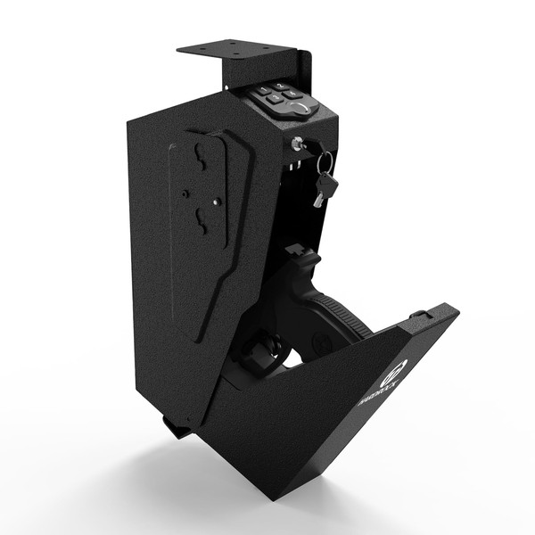 HARDROCK Gun Safe for Pistols, Biometric Wall Mounted Handgun Safe box for Desk, Bedside,Truck,Drop Down Quick Access Security Safe with Fingerprint Keypad Lock for Home nightstand