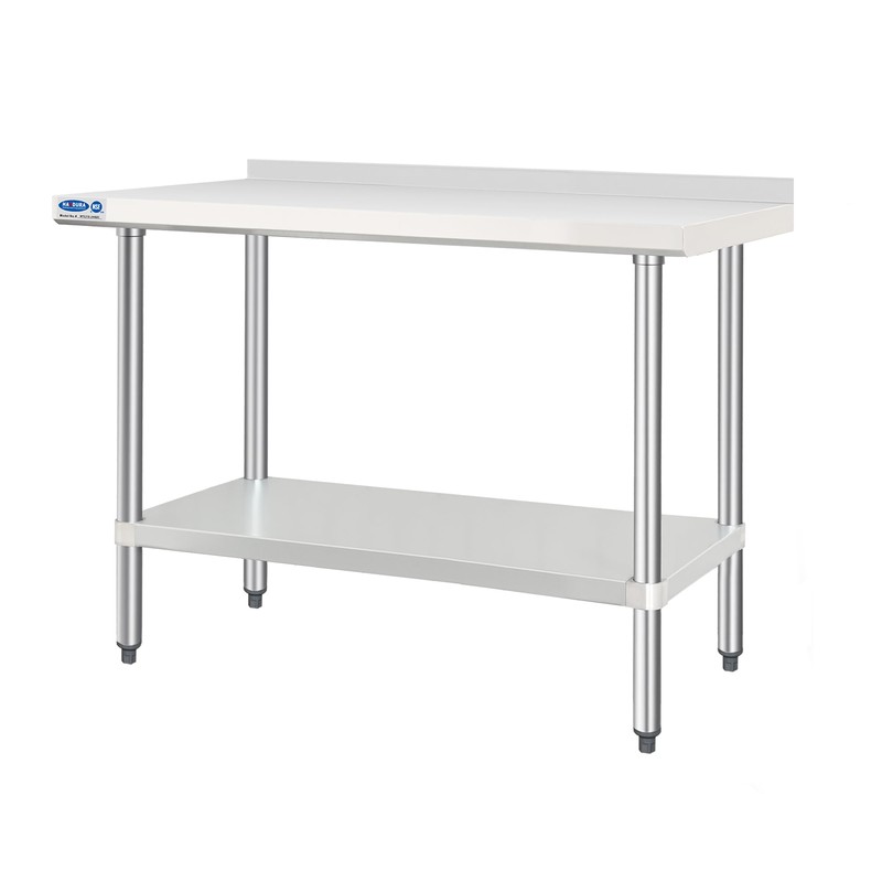 - 【HIGH QUALITY MATERIAL】- Our safety NSF-certified commercial stainless steel table top shelf is made of durable 18-gauge 304 stainless steel, which is excellent resistant to corrosion and rust. The metal table can be widely used in commercial kitchens, restaurants, laboratories, workshops, garages, outdoors.