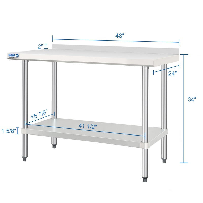 - 【LARGE STORAGE SPACE】- The 24 x 48 inches dimension provides an ample space for commercial kitchen. The top shelf has a weight capacity of 600 lb and the undershelf has a weight capacity of 450 lb, this unit is sturdy and utilitarian enough for food prep, such as store microwave, oven, air fryer, etc.