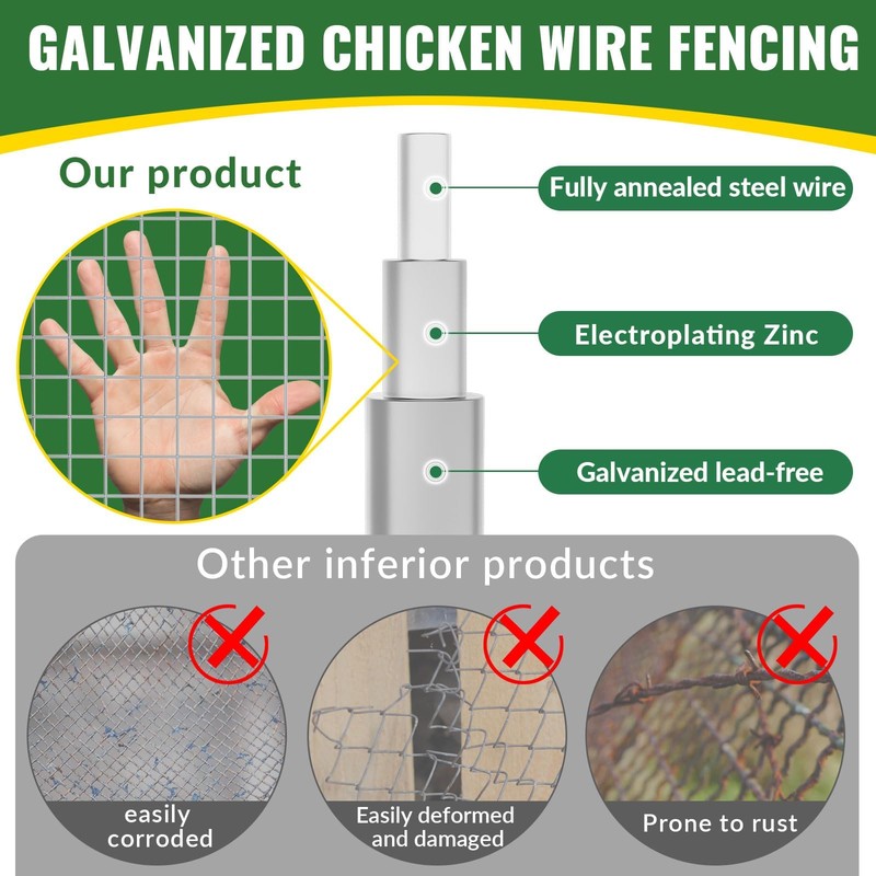 • 【Sturdy Construction】Made of 23 gauge heavy duty galvanized iron, providing a double zinc coating for maximum rust resistance and long life, the hardware cloth would be a good choice for everyone.