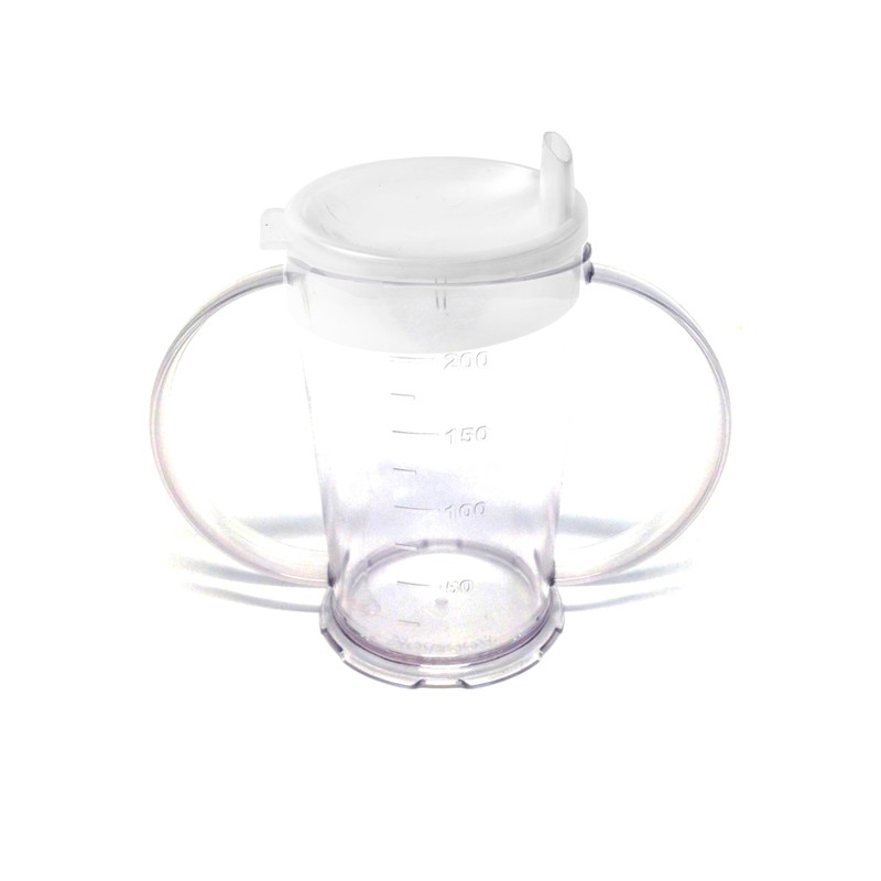 Graduated, 2-handled beaker, ideal for the care sector. Safe, lightweight and easy to use. The 2-handled beaker will help the patient to drink and allows the carer to monitor fluid consumption, helping to ensure the patients keep hydrated. The handles have been designed so the beaker is easy to hold and feedback has shown that it is ideal for people who need extra stability when drinking. The clear spout has a wide opening and is a tight fit to ensure the lid will not come off if the beaker gets knocked over. DIMENSIONS - Diameter: 6.8cm (2.7 inches), Height: 10cm (3.9 inches), Graduated to 20cl/200ml. Made from virtually unbreakable polycarbonate plastic and polypropylene. Dishwasher safe and suitable for both hot and cold drinks. Manufactured in the UK by Harfield Tableware.