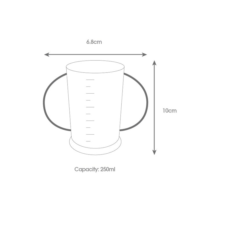 • Dimensions: Diameter – 6.8cm (2.7 inches), Height – 10cm (3.9 inches), Capacity – 200ml (graduated to)/250ml (to the brim).