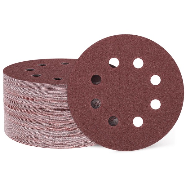 HARFINGTON 100 Pcs 5 Inch Sanding Disc 8 Hole 80 Grit Hook and Loop Sandpaper Random Orbital Sander Pads for Woodworking Automotive Metal Polishing