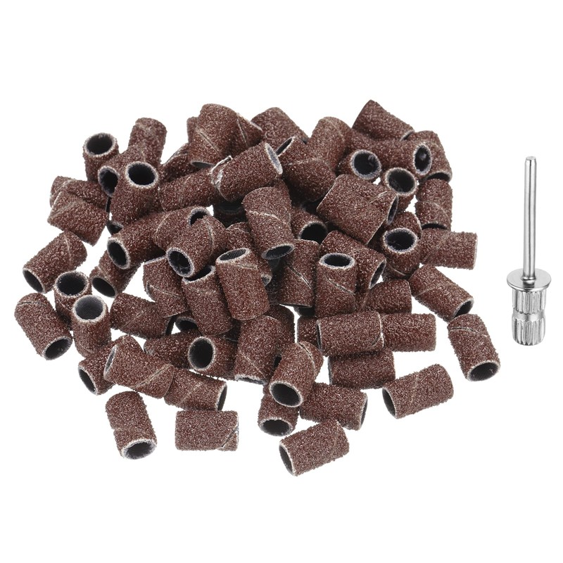 HARFINGTON 100pcs Sanding Bands for Nail Drill, 80 Grit Sanding Band with 6mm / 15/64" Mandrel, Drill Bits Nail Tech File for Acrylic Gel Nail Shaping Polishing, Brown