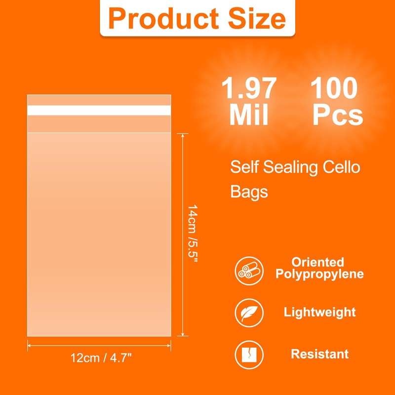 - Material - Crafted from good OPP (Oriented Polypropylene) material, which offers better clarity compared to standard PP plastic bags. These self sealing bags have strength, durability, and excellent transparency. The premium feel of the OPP material also adds a touch of elegance to any packaged item, making it great for both retail and personal use.