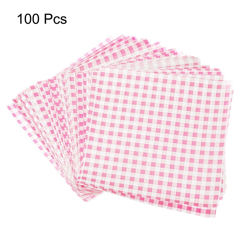 HARFINGTON 100pcs Square Checkered Wax Paper Sheets 7.09" x 7.09" Oil-absorbing Dry Food Wrapping Paper for Sandwich Baking Paper Liners Picnic Basket Bread Hamburger Wrap Kitchen, Pink