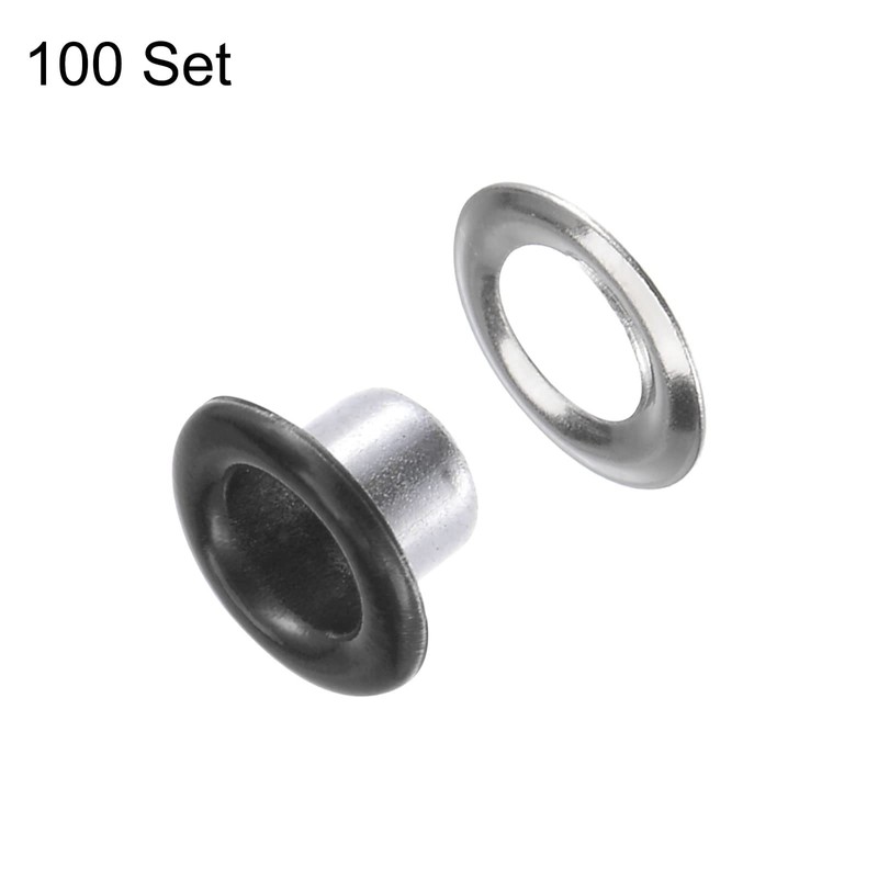HARFINGTON 100set Grommets Kit Metal Eyelets 4mm 1/6" Hole Tiny Grommet for Shoes Clothes Belt Bag DIY Project, Matte Black