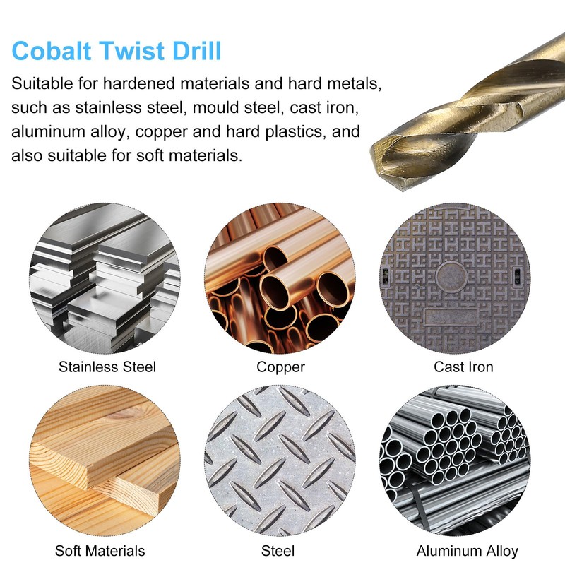 The double ended cobalt drill features a 135-degree split point design, which saves time and effort for fast and accurate drilling, no center punch is required, and the cutting edge is finely ground to meet different cutting precision.