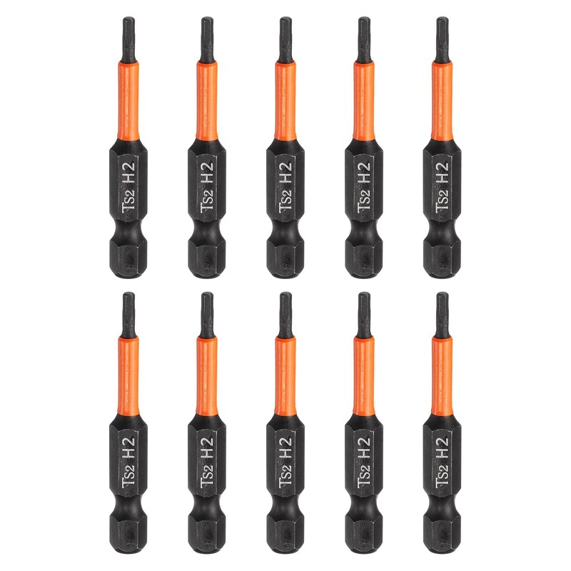 - Size - Hex wrench drill bit size: 2mm (H2), hex shank size: 1/4", total length: 50mm / 2". Each hex screwdriver bit is clearly engraved with size number for easy identification.