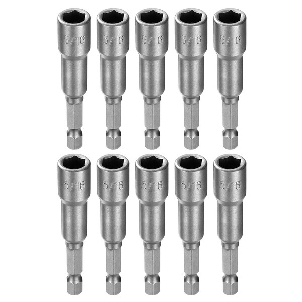 HARFINGTON 10pcs Hex Nut Driver Drill Bit 5/16" 6-Point Socket 1/4" Hex Shank Nut Setter CR-V Steel Quick-Change Nut for Power Drills Impact Drivers, Silver Tone