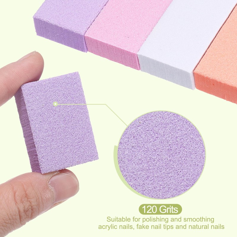 - Material - Made from EVA sanding sponge, which is not only gentle on the nails but also helps in achieving a smooth surface, making it a reliable choice for maintaining and enhancing the appearance of your nails.The 120-grit nail buffer block is distinguished by its water-resistant durability, making it a suitable companion for restoring both acrylic and natural nails.