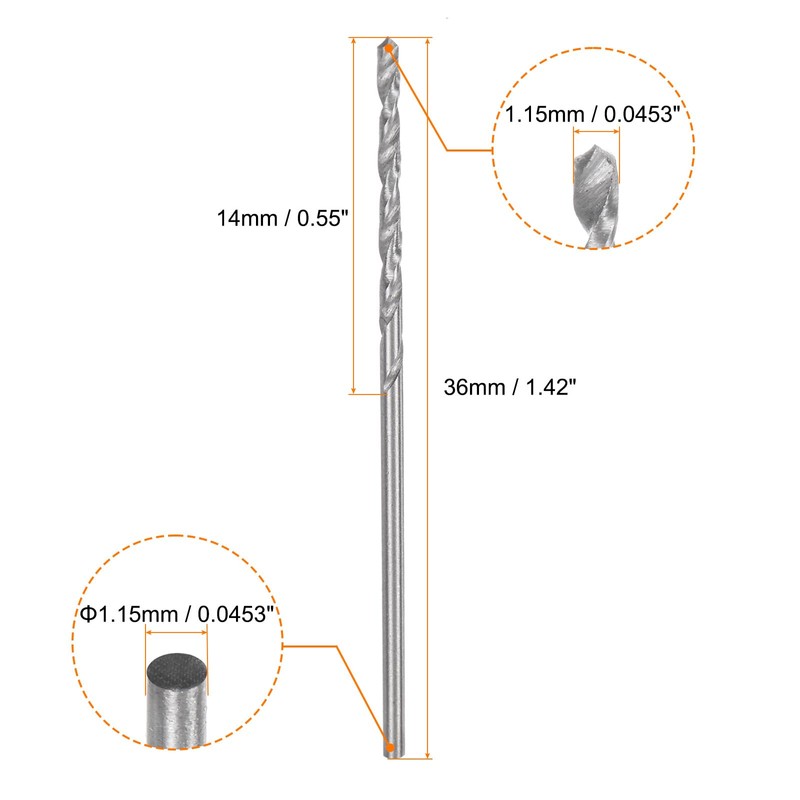 - Size - Crafted with a drilling diameter of 1.15mm (0.0453"), matching round shank diameter for steady handling, and an efficient drilling depth of 14mm (0.55"). The compact total length measures 36mm (1.42"), ensuring accessibility in small spaces.