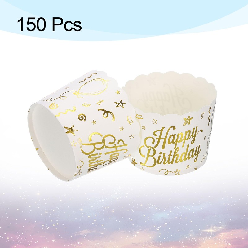 HARFINGTON 150Pcs Paper Baking Cups 6oz Cupcake Wrappers Scalloped Muffins Cases Liners Disposable Greaseproof Containers for Birthday Party, Birthday Pattern