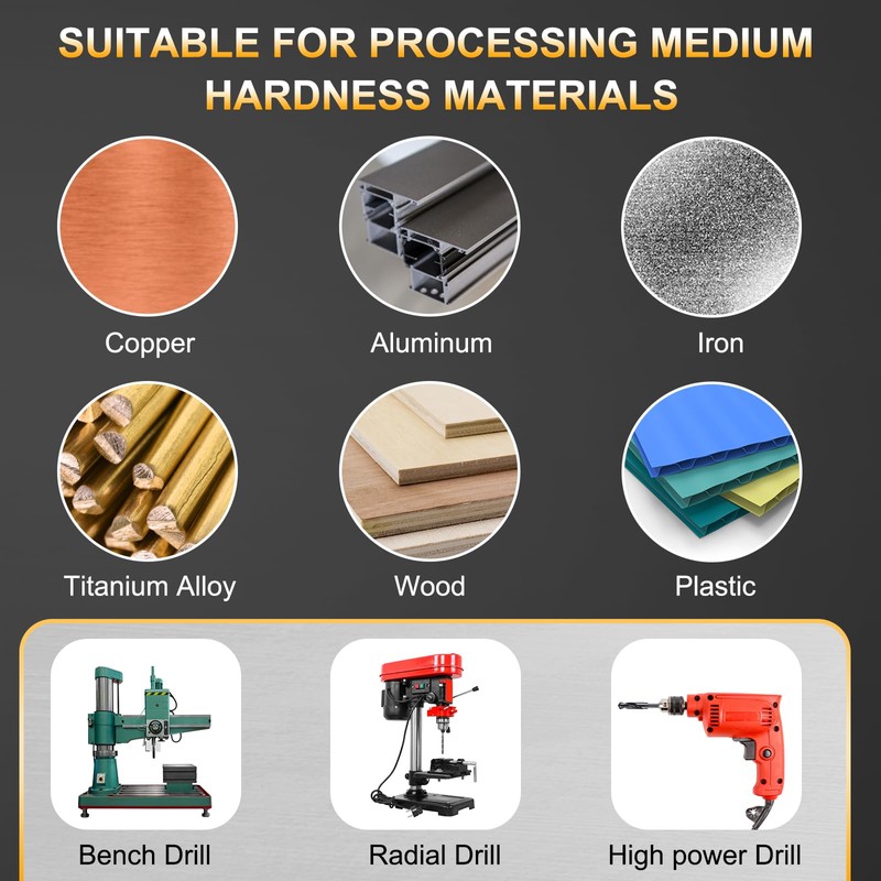 - Application - Suitable for soft metal and woodworking projects, widely used in daily operations such as home maintenance, suitable for processing medium hardness materials, such as thin stainless steel, copper, aluminum, iron, plastic, and wood