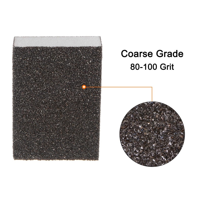 - Size - Medium grade 80-100 Grit sanding blocks 4-sided, dimensions of 100x70x25mm/4"x 2.8" x1".