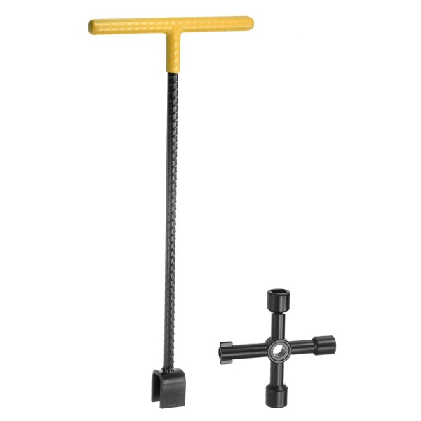 HARFINGTON 17 Inch Enforced Steel T-Handle Water Shut Off Wrench with 4-way Multi-Functional Utility Key for Valves, Curb Main and Water Meters, Yellow