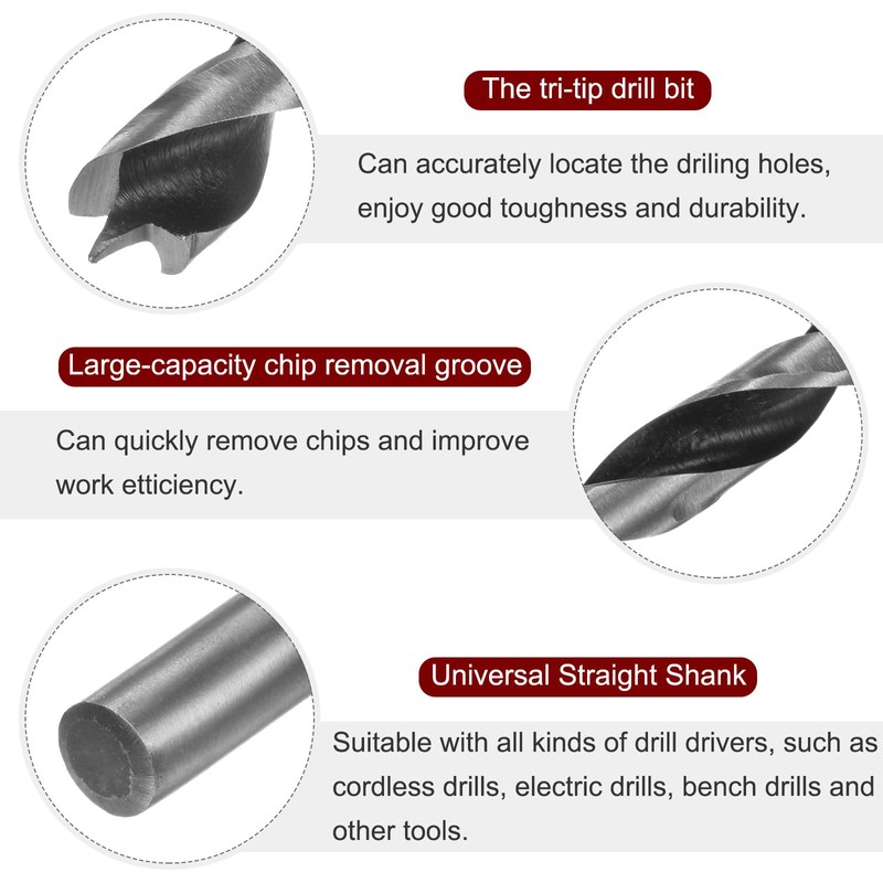 - Feature - The brad point tip can provide precision accuracy for starting your drilling hole, and the widened and deepened chip removal groove can quickly remove chips, which improves your working efficiency.