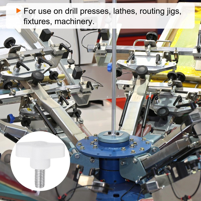- Applications - Thumb screw knobs with hand bolts are commonly used in applications that require frequent and quick adjustments or tightening. Widely used in lathes, drill presses, packaging and woodworking machinery, printing and industrial equipment, and fixtures.