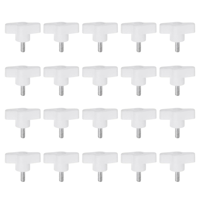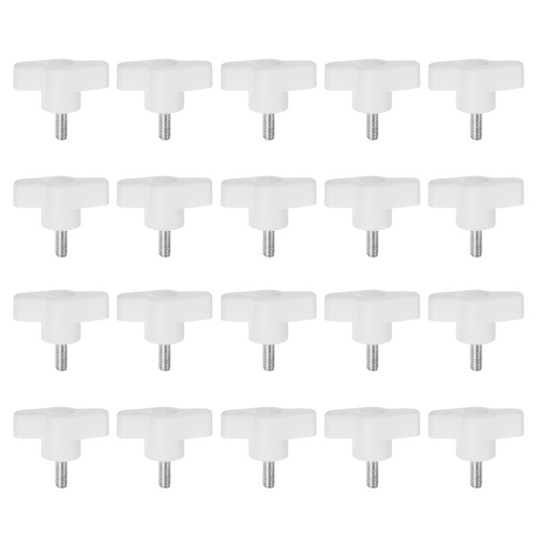 HARFINGTON 20pcs Wing Knobs M5 x 14mm Male Thread Plastic Tee Stud Knobs T Threaded Handles Hand Clamping Tightening Thumb Screws Thumbscrew, White