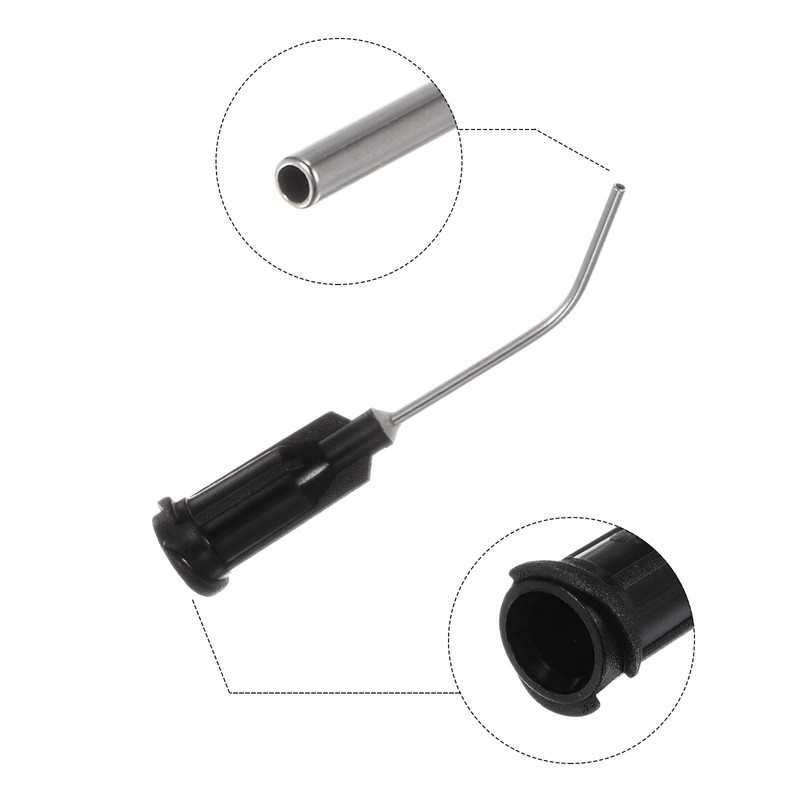 4. 45 degrees bent dispensing needles is suitable for different working faces. During the dispensing process, ensure the sealing of the needle, prevent glue leakage, improve the efficiency, and quickly release the glue.