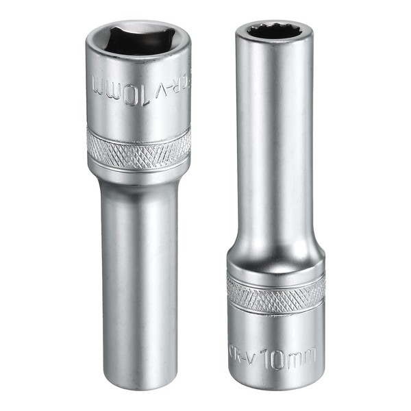HARFINGTON 2pcs 1/2" Drive by 10mm 12-Point Deep Socket 78mm Length Metric Sp...