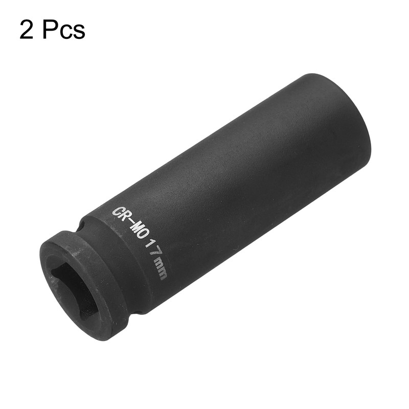 HARFINGTON 2Pcs 12-Point Deep Impact Socket 1/2 Inch Drive 17mm Metric Chrome Molybdenum Alloy Steel Spindle Axle Nut Impact Socket