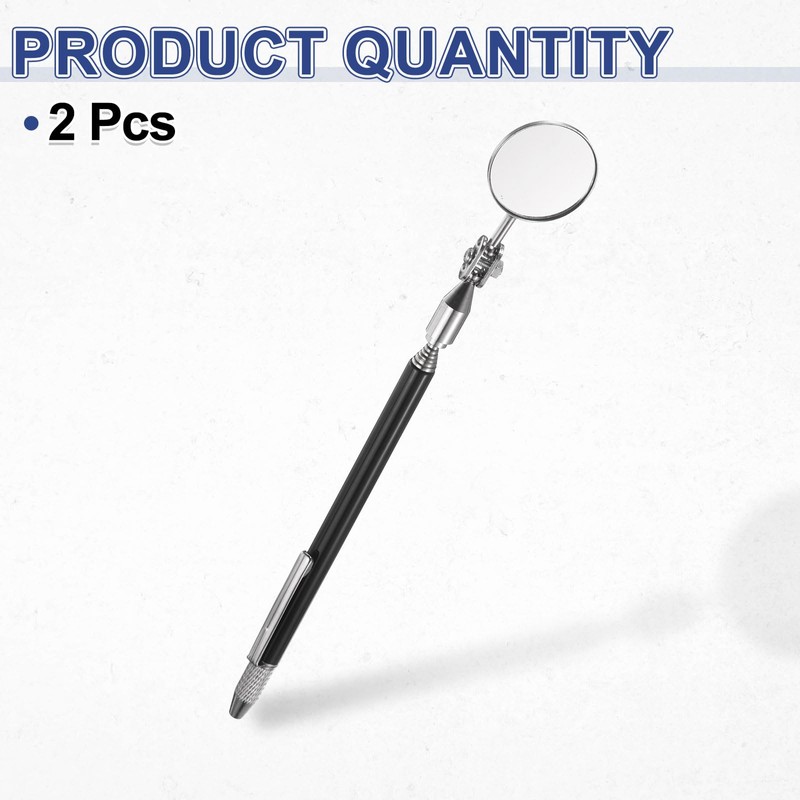 HARFINGTON 2pcs 3 in 1 Telescoping Inspection Mirror 1.2" Round 6.4" to 29.3" 360 Degree Stainless Steel Extendable Mirrors with Magnetic Pickup Tool and Marking Needle for Technicians, Black