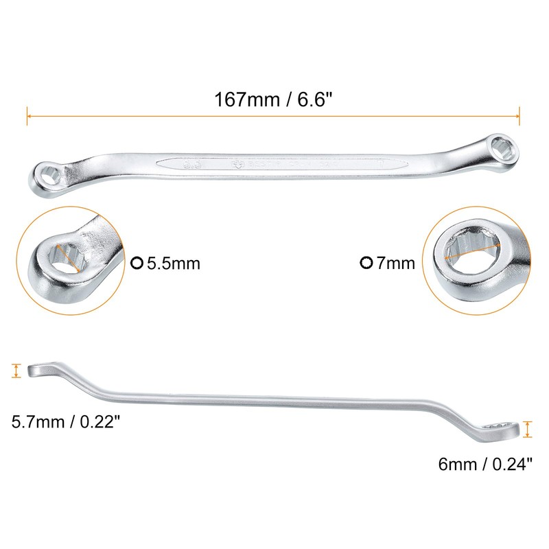 HARFINGTON 2pcs 45-Degree Offset Box End Wrench 5.5mm x 7mm 12 Point Metric CR-V Double Box End Wrench Chrome Vanadium Steel Long Offset Torx Box Wrench for Automotive Home Repair Tool