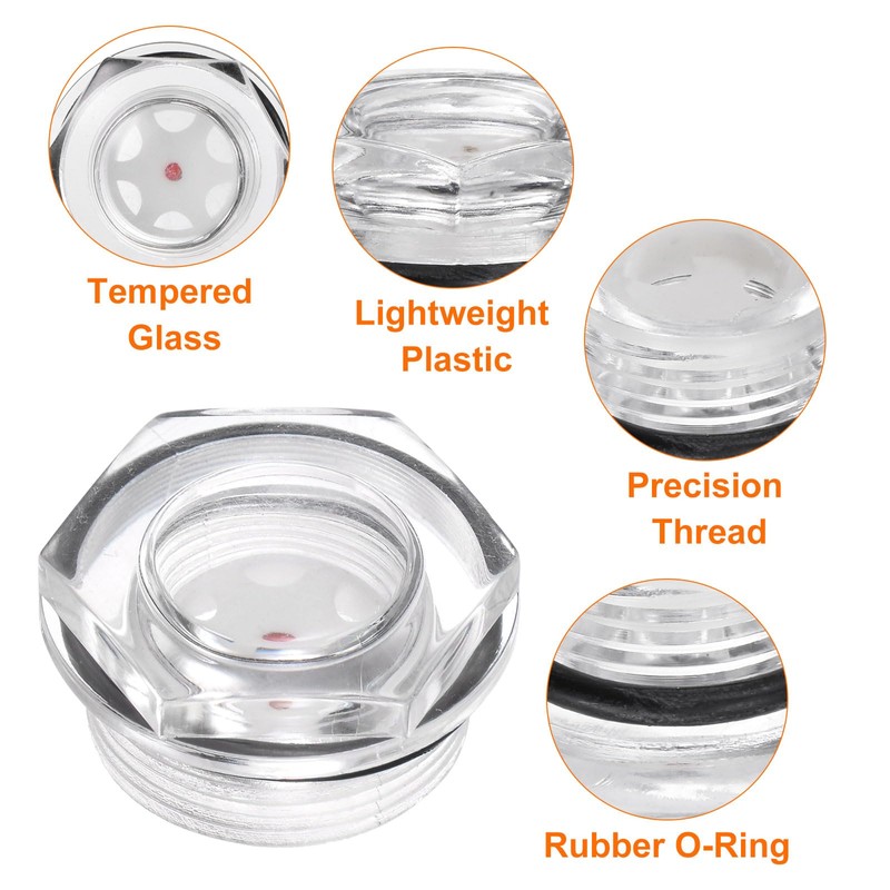 • Material - This oil sight glass is made of plastic and features corrosion and oxidation resistance.Compared to metal materials, it is lightweight, which enhances the flexibility and mobility of equipment installation.