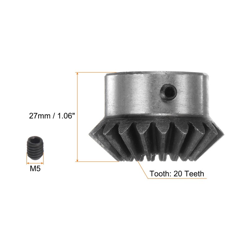 • Feature - The bevel gear set comes with 2 x Bevel Gears, 2 x M5 Screws, 1 x Hex Spanner for simplicity and convenient use. Lower contact ratio between gears, higher load capacity.