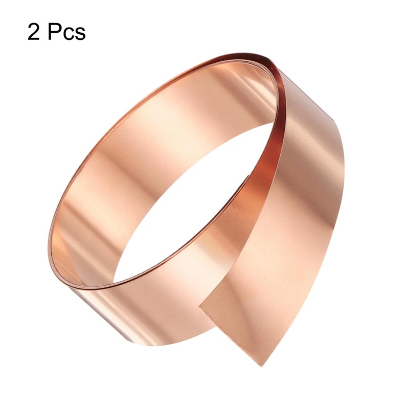 HARFINGTON 2pcs Copper Sheet Roll 0.1mm Thick Copper Flashing 99.95% Pure Copper Strip Waterproof Metal Foil Plate for Building Electronics DIY (0.8" Width x 3.28ft)
