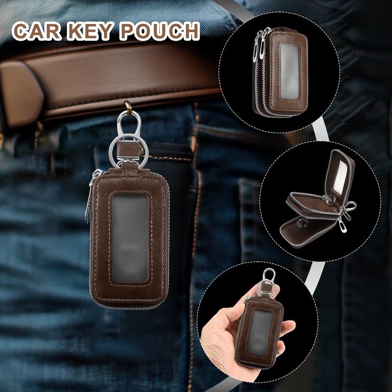 - Material - This car key bag is beautifully crafted from PU leather, showcasing a smooth and lustrous surface that enhances its aesthetic appeal and ensures durability. The soft texture provides a luxurious feel, while the bag's design effectively safeguards your keys against scratches and damage, keeping them pristine.