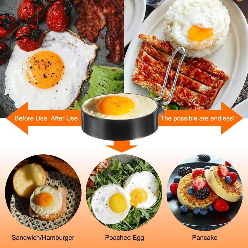 - Application - Round cooking rings make it easy to prepare breakfast. You can use them to cook eggs, omelets, mini pancakes, sandwiches, and burgers. This gadget adds fun and creativity to your breakfast or brunch.