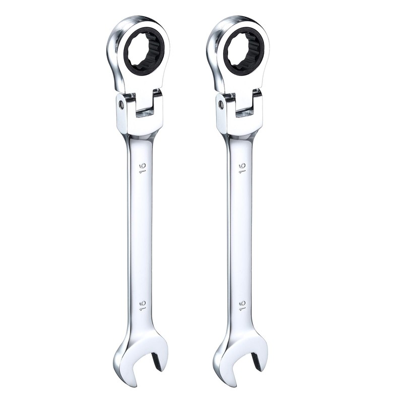 HARFINGTON 2pcs Flex-Head Ratcheting Wrench 16mm 180° Rotating Head Metric Ratchet Combination Wrenches 72-Teeth Chrome Vanadium Steel Open End Ratchet for Fasteners Nut Bolt