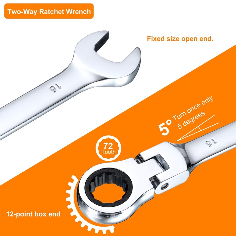 - Feature - 180° flex head of metric ratchet combination wrench can reach the most difficult-to-reach fasteners, and can achieve maximum flexibility and ease of use in a small space. Its anti-slip tooth design provides a firm grip, fits tightly to the fasteners, prevents sliding.