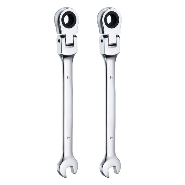 HARFINGTON 2pcs Flex-Head Ratcheting Wrench 7mm 180° Rotating Head Metric Rat...
