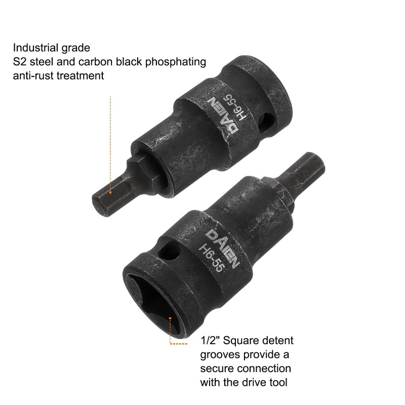 • Size - H6, 1/2" drive, Total Size: 55x22mm / 2.17"x0.87", Rod Length: 16.5mm / 0.65"; The chamfer design can be easily, smoothly and accurately inserted to protect the drill bit and fasteners from damage