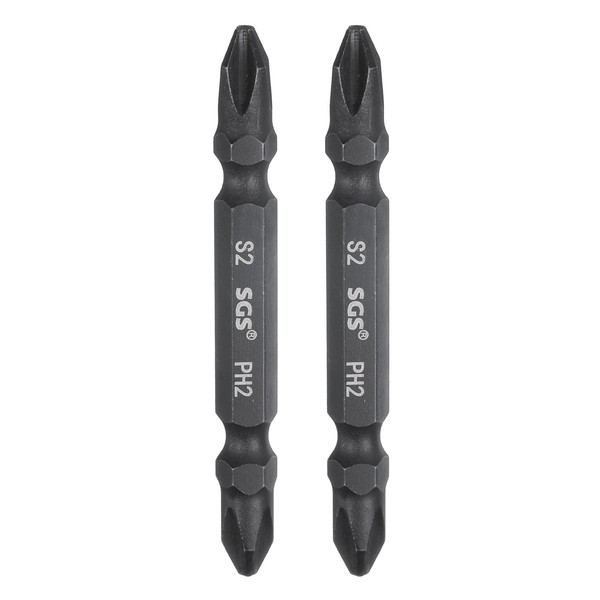 HARFINGTON 2pcs Magnetic Double Ended Screwdriver Bit 6mm PH2 2.56" Length 1/4" Hex Shank S2 Steel Two Sided Phillips Cross Screw Driver Bit, Black