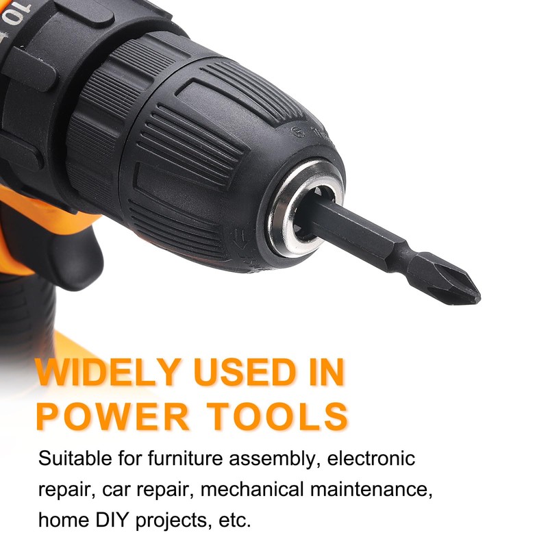 1/4" hex shank driver bits can be used with electric screwdrivers, manual screwdrivers, electric drills, etc. for electricians, mechanical repair work, and furniture installation.