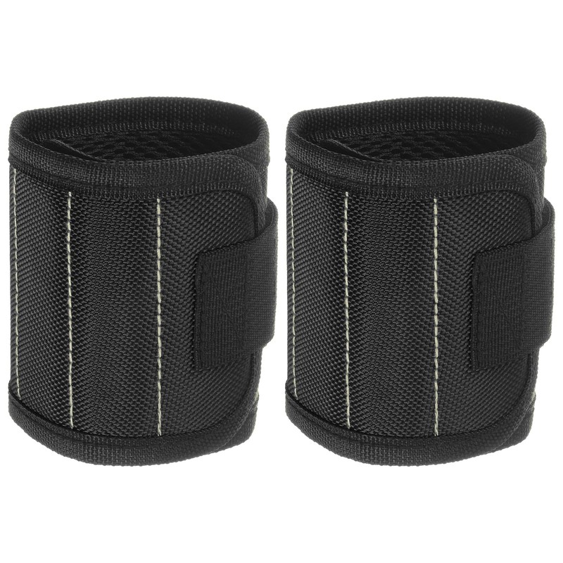 HARFINGTON 2pcs Magnetic Wristband for Screws 15 Powerful Magnets 5 Rows Nylon Wrist Magnet Wrist Band Magnetic Bracelet Tool Holder for Holding Screws Nails Drilling Bits, Black