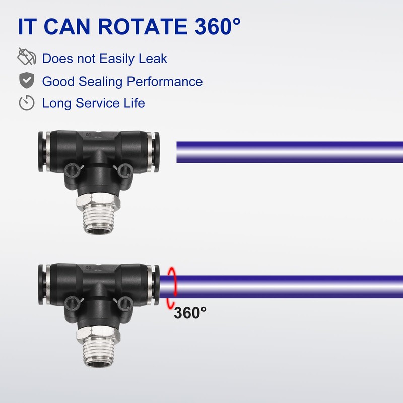 - Feature - Male Branch Tee Connector fitting features a compact design that prevents detachment, ensuring the quick connection of air hoses. It has strong pressure resistance, is suitable for high-pressure environments, and has excellent sealing performance to effectively prevent leaks.