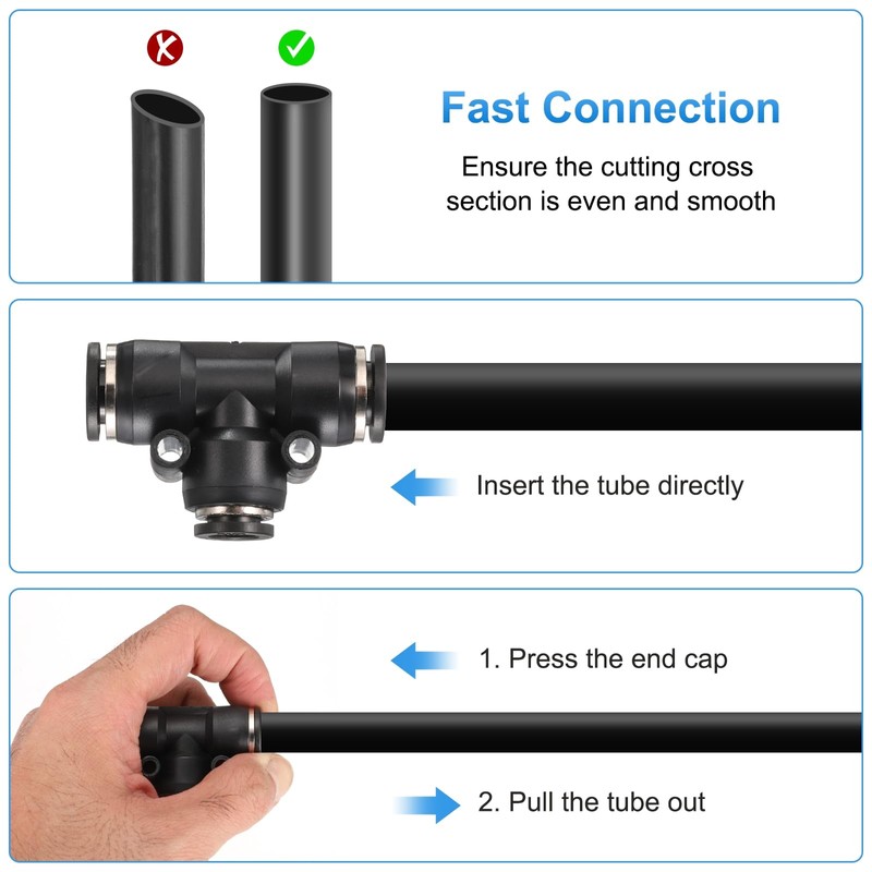 Please carefully check the applicable pipe diameter range of the tee plastic push-to-connect fittings before purchasing.