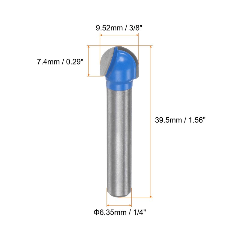 - Size - Cutting Diameter: 3/8 inch / 9.52mm, Shank Diameter: 1/4 inch / 6.35mm, Cutting Depth: 0.29 inch / 7.4mm, Total Length: 1.56 inch / 39.5mm.